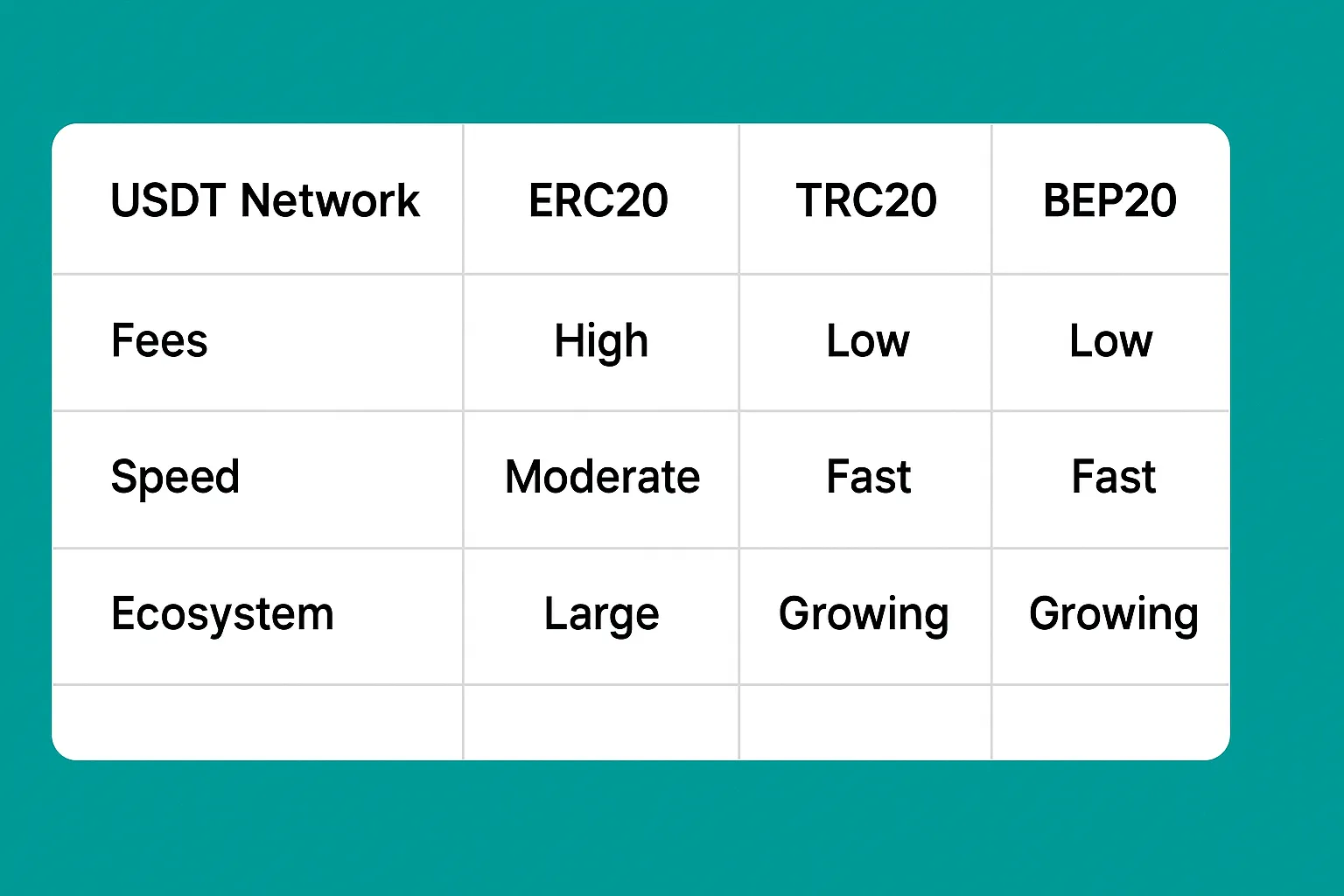 Memilih jaringan terbaik bergantung pada kebutuhan Anda: apakah untuk keamanan, biaya murah, atau ekosistem tertentu. Dengan memahami perbedaan ini, Anda bisa menggunakan USDT lebih efektif di dunia digital.
